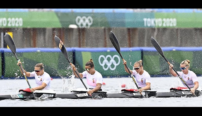 Az olimpiai bajnok női kajak négyes. (Fotó: MTI.)