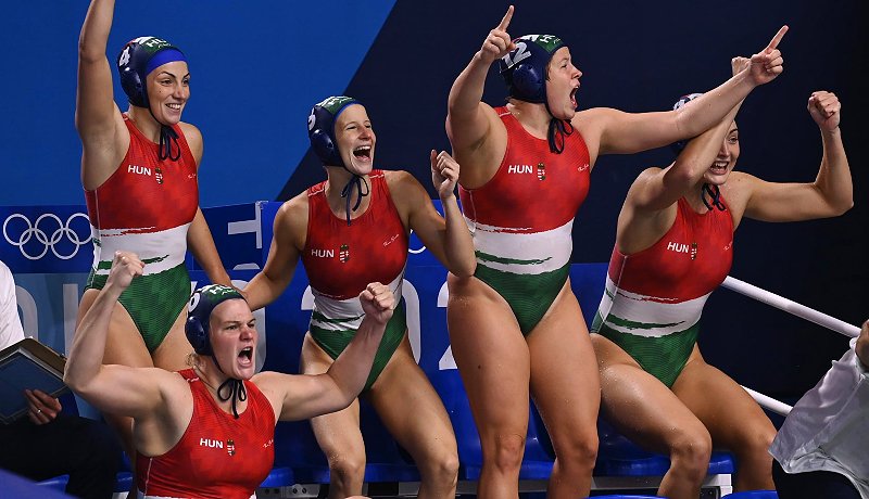 A magyar pólós lányok bronzöröme Tokióban. (Fotó: vlv.hu.)