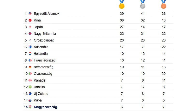 amire a kelet-európai országoknak – az elmúlt évek doppingügyei ellenére most is húszat szerző oroszokat leszámítva – esélyük sem volt. Utoljára a 2012-es londoni olimpián volt egy ország a legjobb tízben a posztkommunista régióból: az a Magyarország, amely most is a legjobban szerepelt – de 6 arany, valamint 7-7 ezüst és bronz most csak a 15. helyre volt elég. Sós Csaba, az úszóválogatott edző fogalmazta meg értékelésében, hogy ennél jobb szerepléshez már az kell, hogy legyen éremhalmozó versenyző a csapatban, aki ezúttal nem volt a keretben.