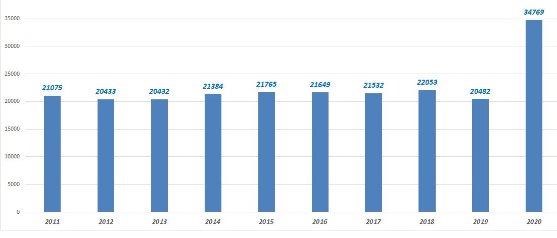 Nagyon szomorú képet fest az átkozott 2020-as évről az Országos Statisztikai Hivatal (INS) legfrissebb felmérése, mely szerint az elmúlt évben, január és november között 23 ezerrel több halálesetet regisztráltak, mint a korábbi évnek ugyanebben az időszakában.