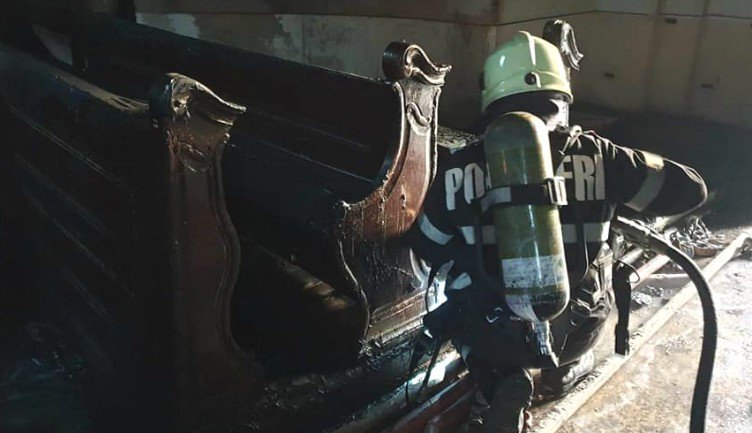 Az épp felújítás alatt álló istenházában egy munkagép gumikereke gyulladt ki, majd a tűz átterjedt három padra és további húsz is megrongálódott, senki nem sérült meg.