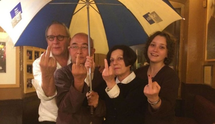 A képen, balról jobbra Ulrich Schreiber, a Berlini Irodalmi Fesztivál igazgatója, Liao Jivu disszidens kínai író, Herta Müller és Corina Bernic látható.