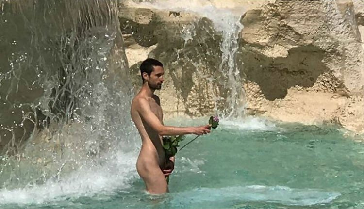 Közszeméremsértés miatt 450 euró pénzbüntetésre ítélték Rómában Adrián Pino Olivera katalán, mondjuk így, performanszművészt, aki pucéran, orgonacsokorral a kezében beugrott a római Trevi-kútba – írja az MTI a La Repubblica római kiadására hivatkozva.