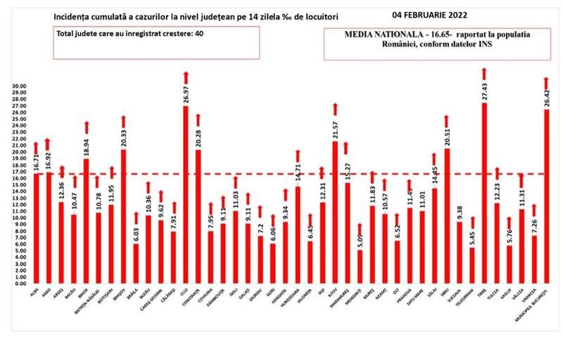 Már 10 927-en szorulnak kórházi kezelésre, közülük 1036-an súlyos állapotban vannak (875-en nem kaptak egyetlen oltást sem). Továbbra is vörös zónás az összes megye, a legnagyobb fertőzöttségi rátát Temes (27) és Kolozs megyében (26), illetve Bukarestben (26) mérték, az országos átlag 16 ezrelék.
