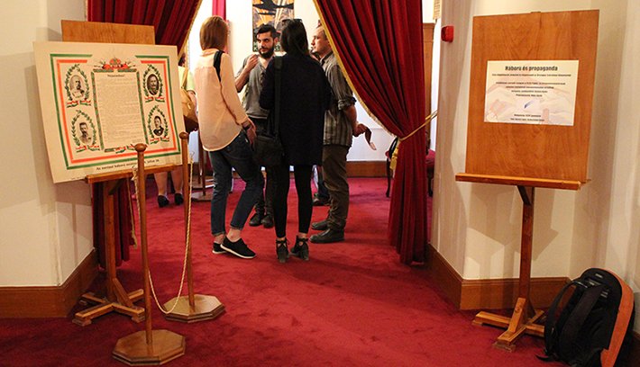 Csütörtök délután rendhagyó módon nem a színművészet csábította Nagyvárad kultúrakedvelő közönségét a Szigligeti Színházba, hanem a Háború és a propaganda. Ez volt a címe ugyanis annak a plakát- és képeslap-kiállításnak, melyet A Holnap után elnevezésű fesztivál második programpontjaként hirdettek meg, és mely a száz évvel ezelőtti I. világháború propagandáját igyekezett bemutatni. A tárlat anyaga a budapesti Országos Széchenyi Könyvtár százezres gyűjteményének töredéke, melyet Katona Anikó művészettörténész állított össze erre az alkalomra. A színház páholyelőcsarnokában helyet kapó kiállítást Boka László irodalomtörténész, egyetemi tanár nyitotta meg, aki bemutatta azt a kontextust, melyben ezek a plakátok születtek.
