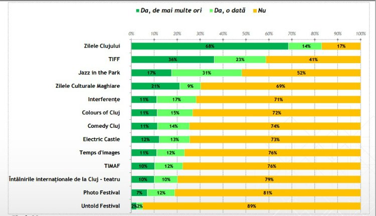 A legismertebb kulturális esemény egyébként a városnapok, a TIFF, illetve a Kolozsvári Magyar Napok. Emil Boc polgármester kedvenc rendezvényét, az Untold Fesztivált mindössze 26 százaléknyian ismerik, és a megkérdezettek 2% vett is részt rajta.