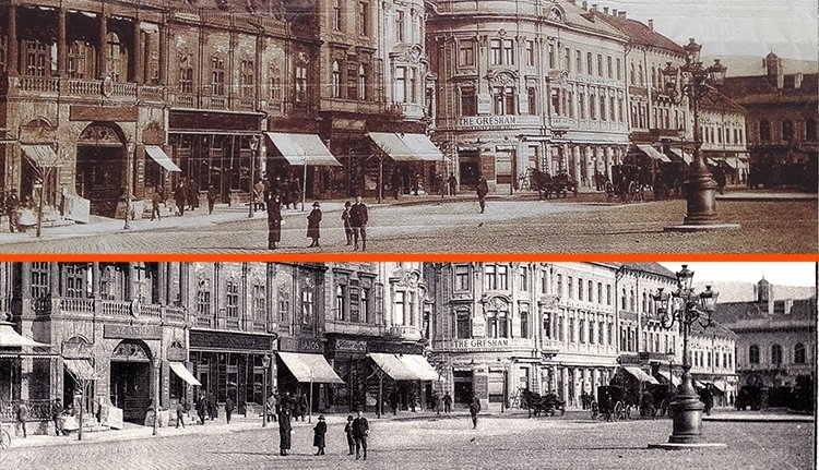 Olyan óriásposztert állítottak ugyanis fel a Főtér nyugati sarkában, amely egy 20. század eleji, a város főterén álló Státuspalotákat ábrázoló fénykép alapján készült.