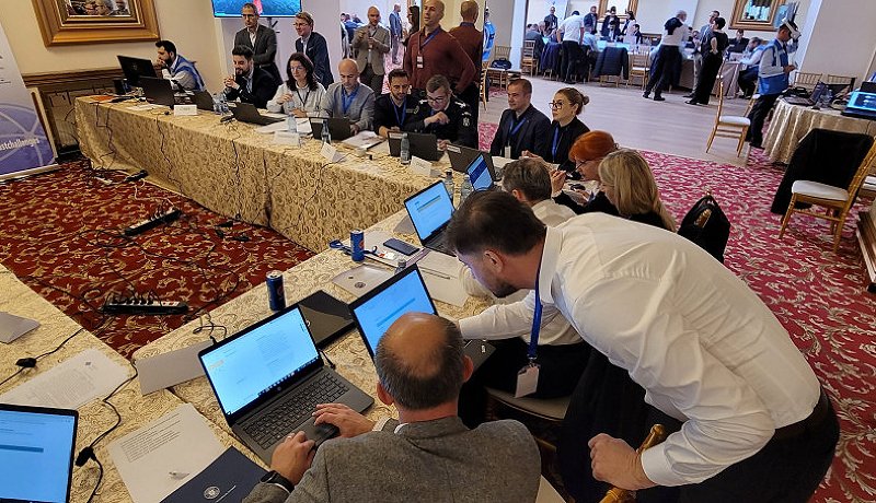 Egy 2021-bene alapított kormányzati szervezet, a bukaresti székhelyű E-ARC (nevezzük Közép-Európai Ellenállási Központnak, a könnyebb érthetőség kedvéért, vagyis a szervezet célja az országot, továbbá a NATO- és EU- partnereket érő sokkhatások kivédése) szervezésében 61 hölgy és úr gyűlt össze egy konstancai szálloda konferenciatermében. (Mellékes dolog, de azért érdemes megnézni a szőnyeget meg azokat az abroszokat, ó!) Ja, 13 külföldi megfigyelő is részt vett a játékban: szlovákok, horvátok, bolgárok és amerikaiak.