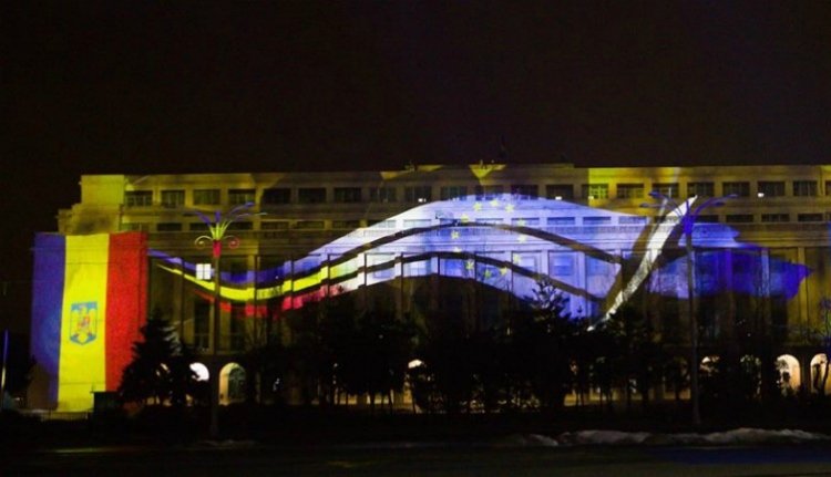 Nem is keveset, 1,2 millió lej nyereséget hoz a cégnek a román EU-elnökség kivetített jelképe.