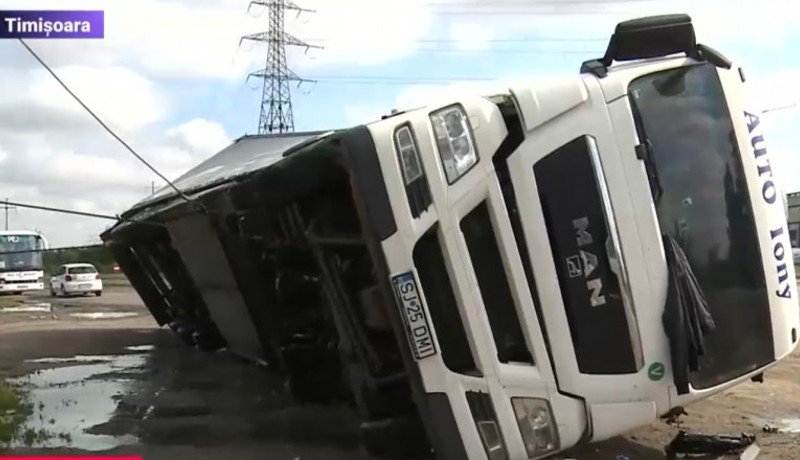 A katasztrófavédelem csütörtöki közlése szerint a zivatarokat és a jégesőt olyan durva erejű, óránként akár 70 kilométeres erősségű széllökések kísérték, hogy Temesváron menet közben borítottak fel két kamiont.