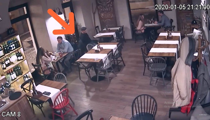 A férfi teljesen átlagos vendégnek néz ki, nem kelt feltűnést. Úgy tesz, mintha az étlapot böngészné, miközben a kabátjával bíbelődik. Majd székével egyre közelebb húzódik a szomszédos asztalnál ülő férfi székéhez, amelyiknek a támláján az illető kabátja lóg. Kiveszi belőle a pénztárcát, végül feltűnésmentesen távozik, mintha egy telefonhívást kapott volna. Az egész alig telt két percbe.