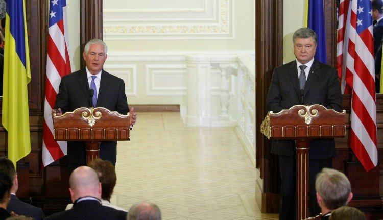 Az ukrán elnökkel közösen tartott sajtótájékoztatón Rex Tillerson amerikai külügyminiszter a Donyec-medencei fegyveres konfliktus békés rendezését kérte az oroszoktól.