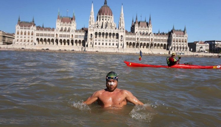 Elérte Budapestet az az extrém sportoló és könyvtáros, aki végigúszik a Dunán.