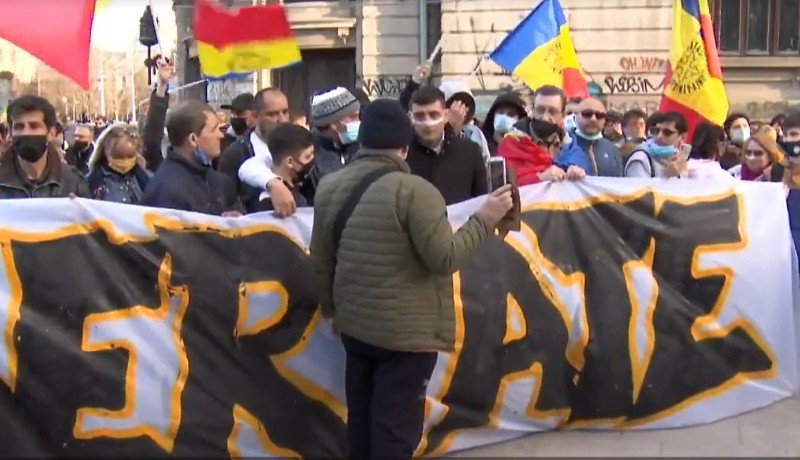 Jelszavaik valának: „Szabadságot!”, „Mondjon le a kormány!”, „Le a maszkokkal, le a korlátozásokkal!”. Legalábbis ilyeneket skandál az összegyűlt tömeg a bukaresti Egyetem téren, a párt fejeseinek vezetésével, hiszen ők is részt vesznek az eseményen.