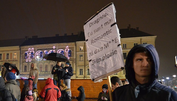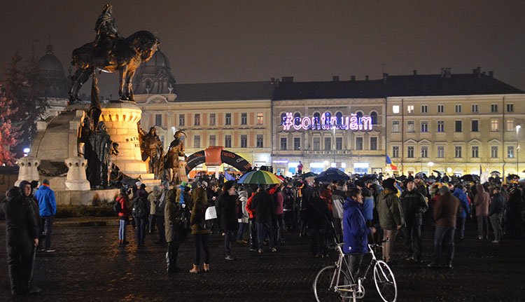 „Elvesztettem a bizalmamat a kormányban. Semmisnek nyilvánítom” – hangzott a legtömörebb beszéd Kolozsváron, ahol a Főtérre ismét jó minőségű hangosítást biztosítottak annak a mintegy kétezer embernek, aki a csepergő eső ellenére is kijött tiltakozni.