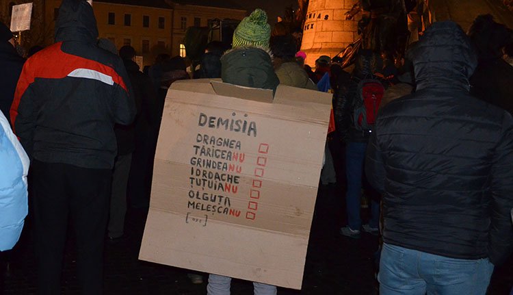Este kilenc után nem sokkal értek vissza a Főtérre, ahol felzúgott a „Lemondást! Lemondást!” és az Együtt megmentjük Romániát”. Nagy üdvricsaj követte a bejelentést, hogy holnap is kijönnek, illetve hogy hétvégén ismét megatüntetések várhatók. Addig pedig viselje mindenki bátran a fehér karszalagot #rezist felirattal, biztattak a felszólalók. A mai megmozdulás fél tíz körül ért véget.