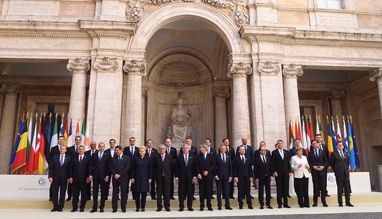 Az ünnepi csúcstalálkozót abból az alkalomból tartották, hogy a hat alapító tagállam – Olaszország, Németország, Franciaország, Hollandia, Belgium és Luxemburg – 60 évvel ezelőtt, 1957. március 25-én írta alá a Római Szerződést, amellyel megalapították az Európai Unió elődszervezeteit. Ez a magyarázata annak is, hogy az ülést az olasz fővárosban tartották.