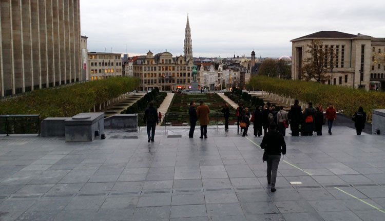 Ettől eltekintve kevés dolog jelezte, hogy az átlagostól eltérő állapotok uralkodnának a városban. Három nappal a párizsi merényletek után, hétfőn este a város főterén, a híres Grand Place-on (azaz flamandul Groote Markton) álló, csodálatos, gótikus városháza tornyát még a kék-fehér-piros francia trikolór színeivel világították meg a szolidaritás jegyében, de kedden már a szokásos díszkivilágítás fogadott.