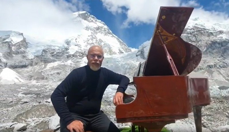 A művész a Mount Everest alaptáborát elérve 5364 méteres magasságban játszotta el összesen 28 ország himnuszát, valamint ismert zeneszerzők műveit játszotta.