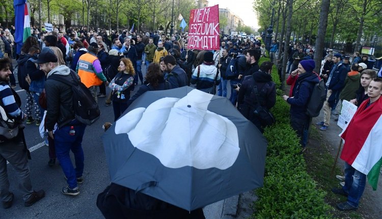 Kormányellenes és az uniót támogató jelszavakat skandáltak, majd elvonultak. Egy részük az Oktogonhoz ment, hogy folytassa a tüntetést.