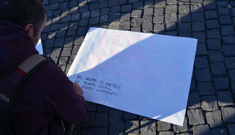 Mivel a bukaresti Colectiv klubban egy koncerten kitört tűzvész okát is sokan a tulajdonosok zsugoriságában (olcsó, gyúlékony anyaggal hangszigetelték a klubot, nem biztosítottak elegendő kijáratot) és az ellenőrző hatóságok korrumpálhatóságában látják, a ma délutánra tervezett tüntetést a Facebookon átnevezték arra, hogy A korrupció embereket öl, és csendes emlékezésként zajlott le. Ugyanezt az üzenetet erősítette a megmozdulásra hozott, illetve helyben írt transzparens.
