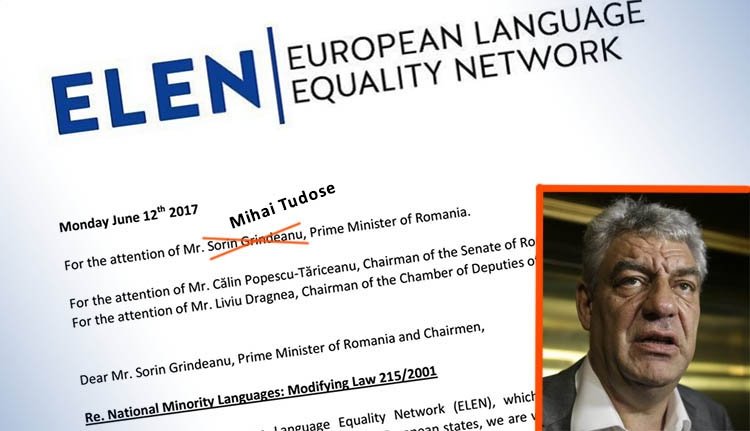 Az Európai Nyelvi Egyenlőségért Hálózat (ELEN) vezetői, Ferran Suay elnök és Davyth Hicks főtitkár Mihai Tudosénak, a csütörtökön hivatalába iktatott új román miniszterelnöknek is elküldte levelét, amelyben a közigazgatási törvény módosítási javaslataival kapcsolatban fejezték ki támogatásukat – közölte az Erdélyi Magyar Nemzeti Tanács (ELEN).