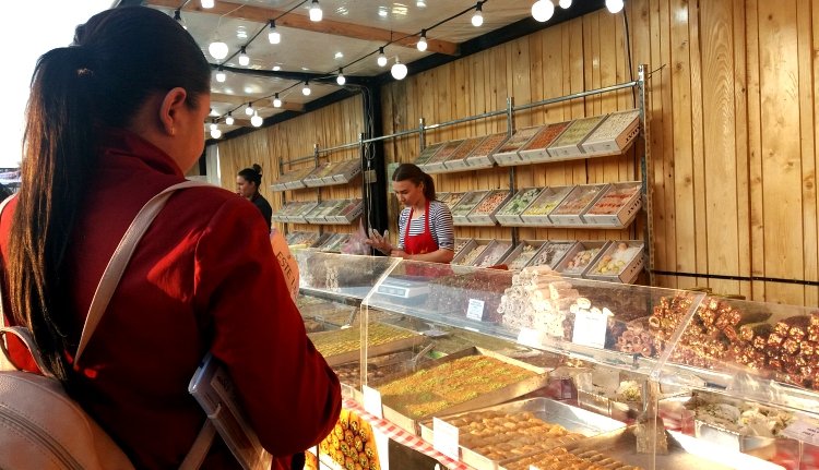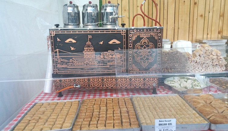 Utána lecsúszik egy-két baclava, száz grammot 6 lejért adnak, de sokféle halva és rahát is van.