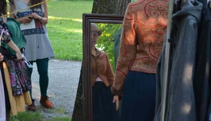 Sőt. Mindenki megtalálja magának a megfelelő ruhát. És milyen úri a dolog: nagy tükör is van a parkbeli próbafülkében!