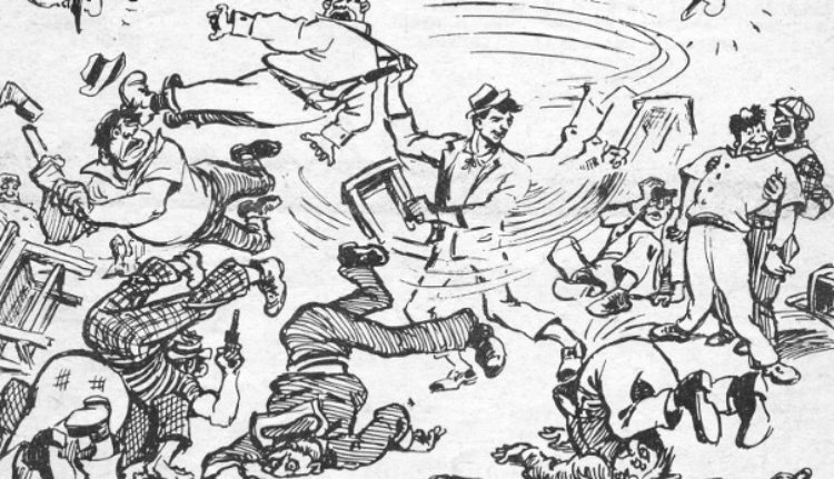 Udvarhelyen a főszerkesztő az alvilági figurákkal verekszik, Szatmár megyében az idegenlégiós az éttermi személyzettel. Rejtő Jenő emeli kalapját.