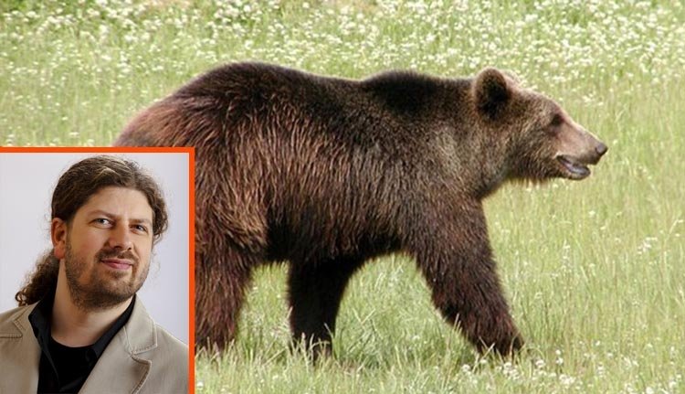Remus Cernea a Szebenben lelőtt medvének „dedikálná” törvénytervezetét.