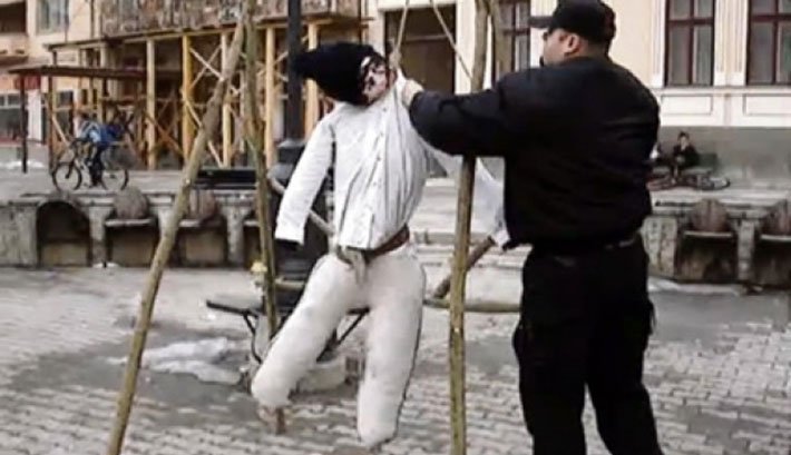 „halálra ítélt” és felakasztott egy Avram Iancut ábrázoló bábut.