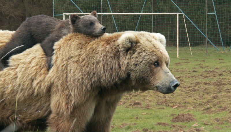 Semmiképp nem a honi labdarúgás színvonalát akarta emelni a 100 kilós anyamedve, egyszerűen a pálya alatt barlangot ásott magának és ott nevelgette a két bocsát, mert megtetszett neki a környék.