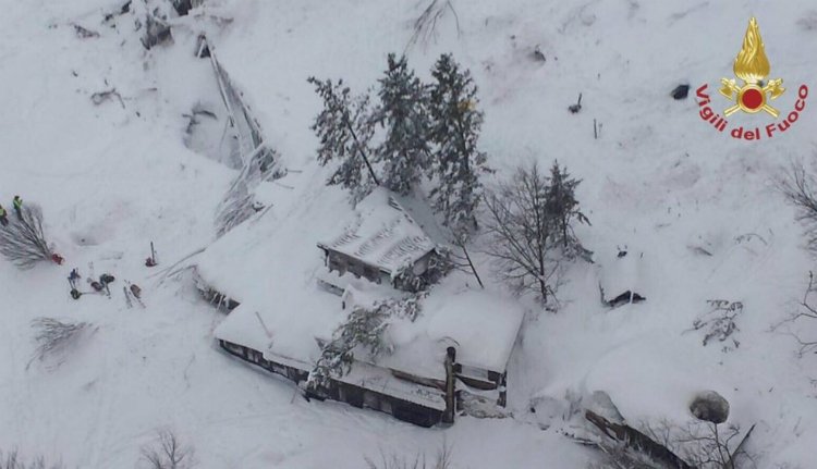 Az AFP és Reuters szerint többen is életüket vesztették a közép-olaszországi Farindola téli üdülőtelepén, ahol lavina omlott a Rigopiano szállodára. A legutóbbi információk szerint a hotelben nagyjából 35 ember tartózkodhatott, 22 vendég és néhány alkalmazott. Mindeddig két embert sikerült élve kimenteni, három áldozat már nem élt, amikor a mentőcsapatok rájuk találtak a lavina által elsodort szálloda törmelékei alól. Személyazonosságukat egyenlőre nem hozták nyilvánosságra.