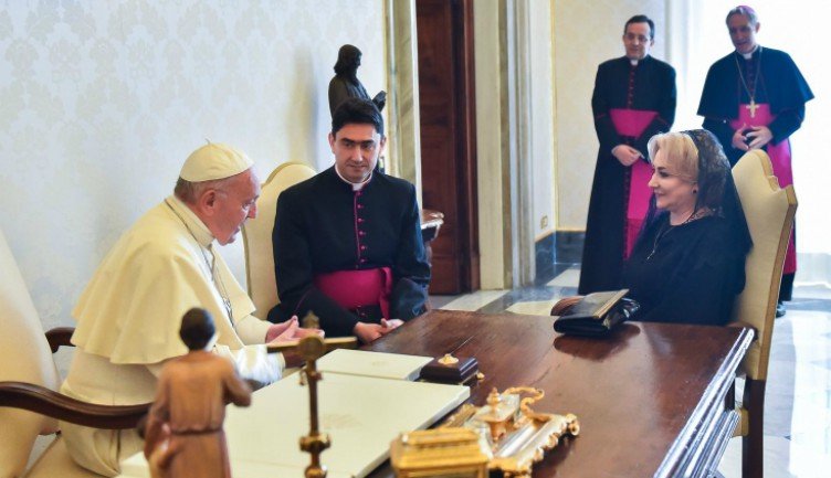 Privát audiencián fogadta pénteken Ferenc pápa Viorica Dăncilă kormányfőt. A román miniszterelnök kifejezte reményét, hogy a Szentatya ellátogat majd Romániába. A kormány közleménye szerint Dăncilă hangot adott azon óhajának, hogy a modern román állam centenáriumi évét a Vatikánban is román vonatkozású kulturális, akadémiai és vallási rendezvények sorával tegyék emlékezetessé. A beszélgetés során szóba került a két állam álláspontjának közelítése Európa jövőjéről, emberjogi kérdések, a vallásszabadság témaköre, valamint az Európa keresztény gyökereihez való viszonyulás.