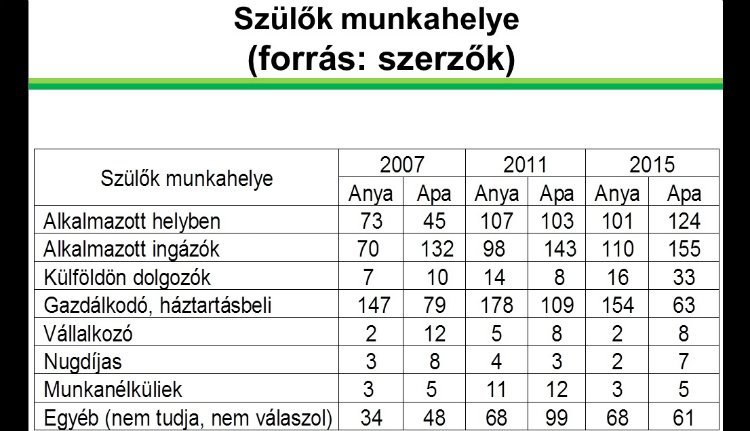 A külföldön dolgozó szülők száma növekvő, a gazdálkodással foglalkozó apukák száma csökkenő tendenciát mutat.