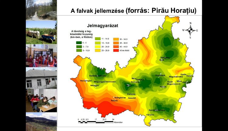 Kolozs megyében nagy különbségek vannak az egyes települések között, így a diákok sem egyenlő eséllyel indulnak pályaválasztáskor. A térképen zölddel jelölték azokat a vidékeket, ahonnan a gyerekek csak néhány kilométert kell megtegyenek a legközelebbi líceumig, és pirossal azokat, ahonnan akár 45 kilométer a távolság. Ezek elhelyezkedése a vasúti közlekedés vonalát követi, holott ma már inkább a gépjárműves közlekedés a jellemző vidéken is. A hátrányosabb helyzetű településeken gyorsabb az elöregedés és az elvándorlás folyamata.