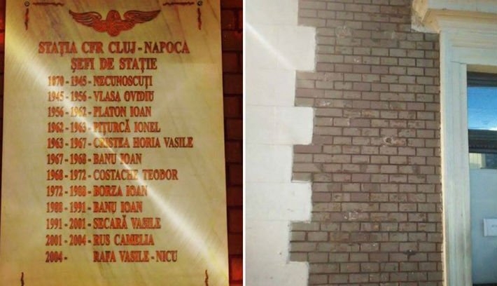 A Musai-Muszáj civil kezdeményező csoport számolt be Facebook-oldalán arról az örvendetes tényről, hogy a Román Állami Vasúttársaság (CFR) kolozsvári kirendeltsége suttyomban eltávolította azt a márványtáblát, amelyen a kincses város állomásfőnökeinek nevei szerepeltek. A szóban forgó táblával mindössze az volt a probléma, hogy az 1945 előtti időket ennyivel intézték el: Ismeretlenek (Necunoscuţi). Vagyis a CFR-nek kitartó kutatómunkával sem sikerült kiderítenie, kik voltak a kolozsvári vasútállomás nem román nemzetiségű főnökei.