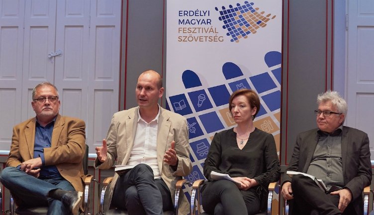 Zatykó Gyula, Gergely Balázs, Szabó Lilla és Márta István a sajtótájékoztatón. Fotók: Biró István | Kincses Kolozsvár Egyesület.