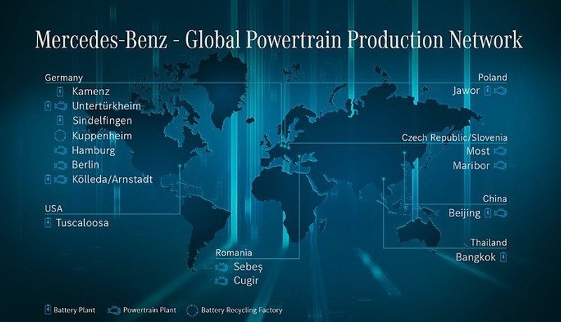 A német cég által közzétett ábra szerint 2025-től mindkét gyárban elektromos motorokat gyártanak majd az új, teljes mértékben elektromos EQ modellek számára.