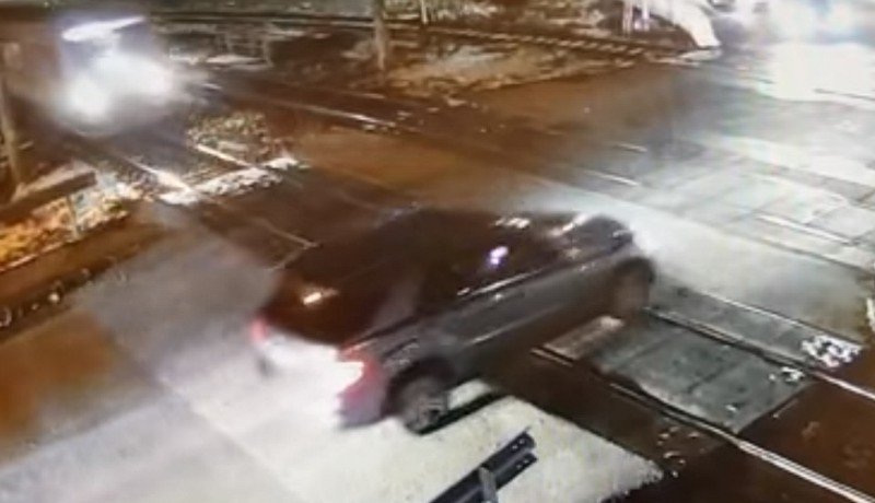 Egy nemeszsuki (Kolozs megye) vasúti átkelőnél készült ez a hajmeresztő felvétel, melyen az látszik, hogy egy gépkocsi megáll a vörös jelzésnél, az egyik irányból érkező vonatot még megvárja, majd gondolkodás nélkül rágurul a sínekre.