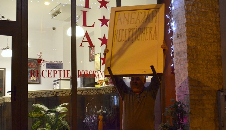 A Budai Nagy Antal utcán lévő egyik szálloda vezetője tartja magasba a recepcióst kereső tábláját, amikor arra haladt el a többezres tömeg. Közben azt kiabálta, hogy már négy hónapja keres munkaerőt az állásra, és nem talál.