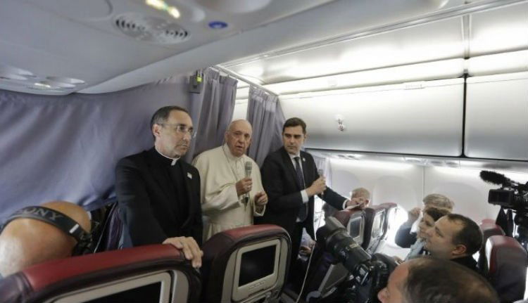 A szokás ilyenkor az, hogy a pápa a repülőgépen is beszélget az újságírókkal. Az első két kérdést rendszerint azon ország újságírói tehetik fel, ahol éppen járt. Most pedig úgy alakult, hogy a román közszolgálati televízió után a nagyváradi római katolikus püspökség sajtófelelőse, Micaci Cristian tehette fel a második kérdést.
