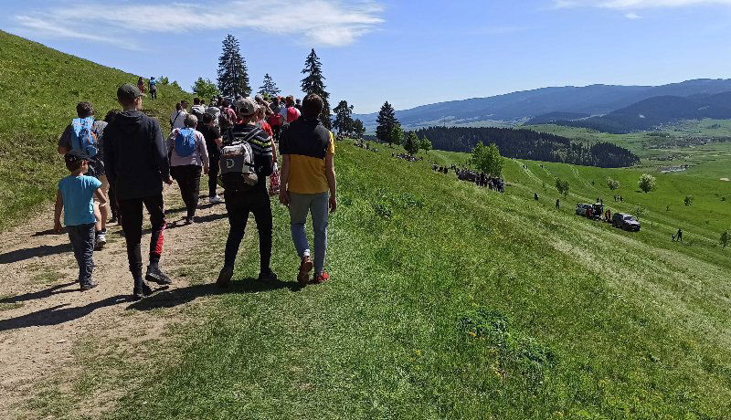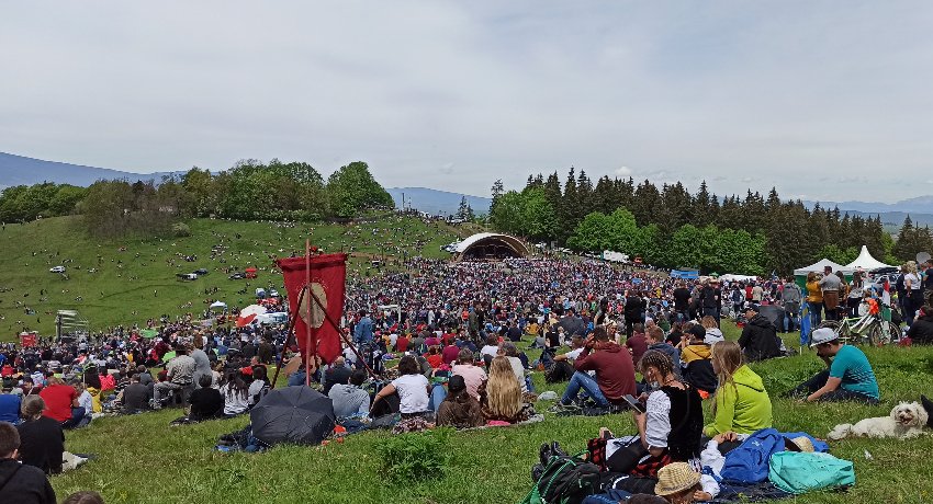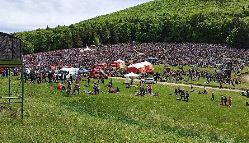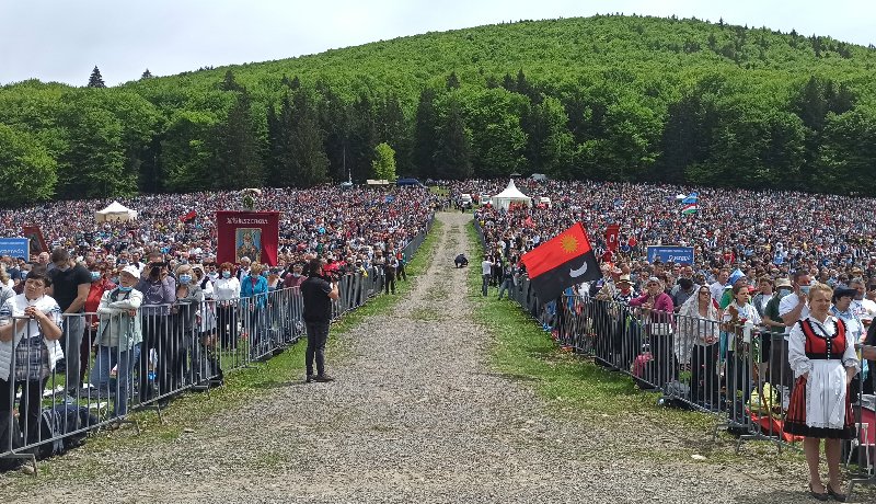 Bár idén a járványügyi szabályok alaposan megnehezítették a külföldi zarándokok részvételét, így is sokan gyűltek össze. A tömeg most is betöltötte a hegynyerget.