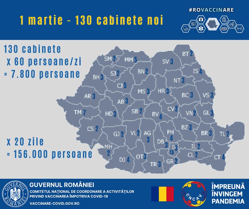 Az oltópontok mindegyikében naponta 60 személy kapja meg a vakcinát március első húsz napjában, ez összesen 156 ezer embert jelent.