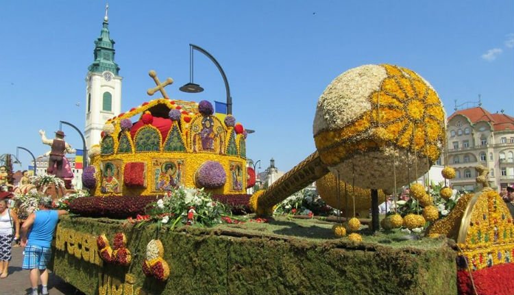 Konkrétan az augusztus 21-i virágkarneválon, amelyen – amolyan urak által levetett ünnepként – az augusztus 20-i debreceni virágkarnevál néhány kocsija vonul fel a Pece-parti Párizs utcáin. Ezek között rendszerint ott van a debreceni karnevált hagyományosan megnyitó kocsi, amelyen a Szent Korona és a koronázási jelképek – a jogar és az országalma – láthatók, emellett felvonul Nagyvárad és Debrecen, illetve Bihar és Hajdú-Bihar közös virágkocsija, valamint még néhány kocsi a látványosabbak közül.