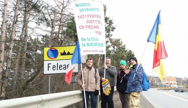 Öt személy indult gyalogosan útnak szerdán Kolozsvárról Bukarest felé így tiltakozva az igazságszolgáltatást érintő reformok ellen. A remény menetének nevezett akció 11 napig tart és Torda, Marosvásárhely, Segesvár, Brassó és Ploiești érintésével érkezik a román fővárosba. A menetelők célja a január 20-ra meghirdetett nagyszabású tüntetésen való részvétel. Segesváron egy másik csoport, köztük négy vak személy csatlakozik hozzájuk.