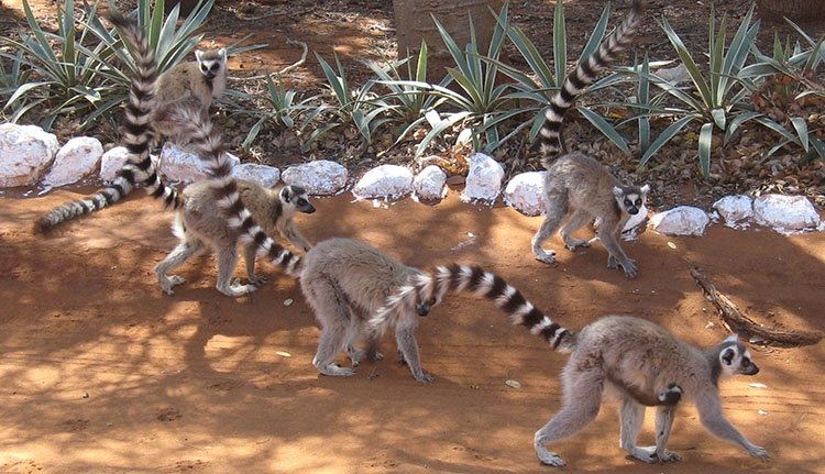 A gyűrűsfarkú makik hosszú és feltűnő színezetű, fehér-feketén gyűrűzött farkukról kapták nevüket, a faj kizárólag Madagaszkár dél-nyugati és déli részein él.