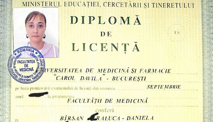 Az áldoktornő állítása szerint 2013-ban végzett a Carol Davila Orvosi és Gyógyszerészeti Egyetemen, azonban a felsőoktatási intézmény dékánja, Cătălin Cîrstoiu azt mondja: