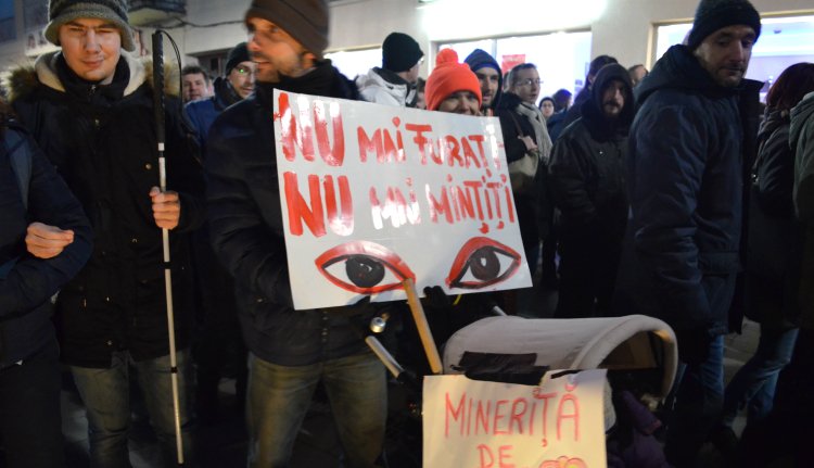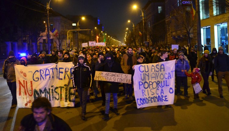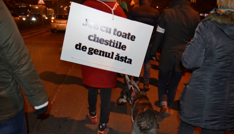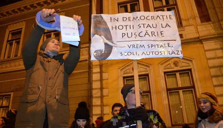 A tiltakozók táblákat emeltek a magasba olyan feliratokkal, mint „A következő életben kaptok amnesztiát”, „A demokráciában a tolvajok a börtönben ülnek”, „Tiszteljétek a jogállamot”, „Nem kell amnesztia, Kolozsvár nem amnéziás”, és azt skandálták: „Mondjatok le”, „Vigyen el a DNA”, „Dragnea, ne feledd, az ország nem a tied”, „Dragnea, ne feledd, várjuk a könyvedet” – arra utalva, hogy egyes, korrupció miatt bebörtönzött politikusok úgy rövidítik le büntetésük hosszát, hogy kétes szerzőségű és nulla tudományos értékű könyveket írnak sorozatban.