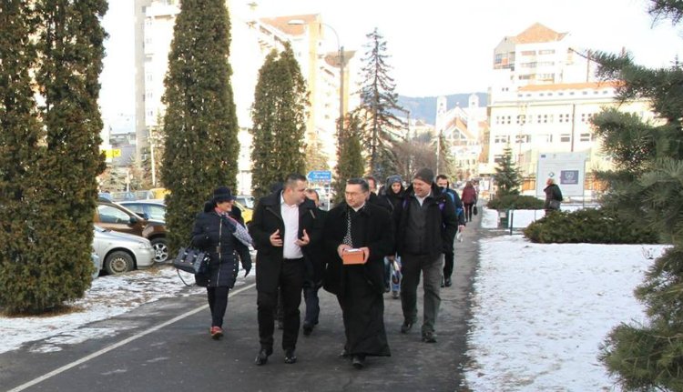 A tanácsülés végén – ahogy a fenti kép is bemutatja – Solymosi Alpár unitárius lelkész kezdeményezésére a tanácsosok „polgári séták” keretében kísérték el a parókiákra a zászlót egy-egy dobozban elvivő lelkészeket.